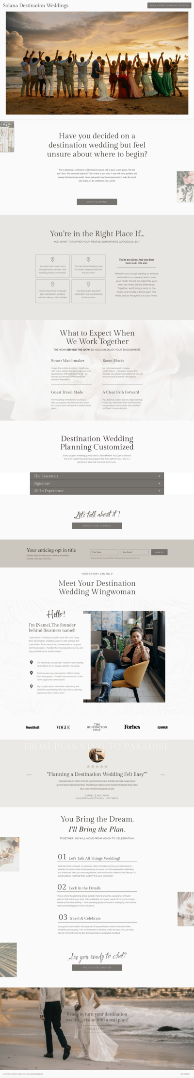 Built on Showit, Solana gives you drag-and-drop freedom and a pre-labeled layout that’s as intuitive as it is beautiful. It’s fully customizable, SEO-friendly, and mobile-ready — so you can go from idea to live page in days, not weeks.