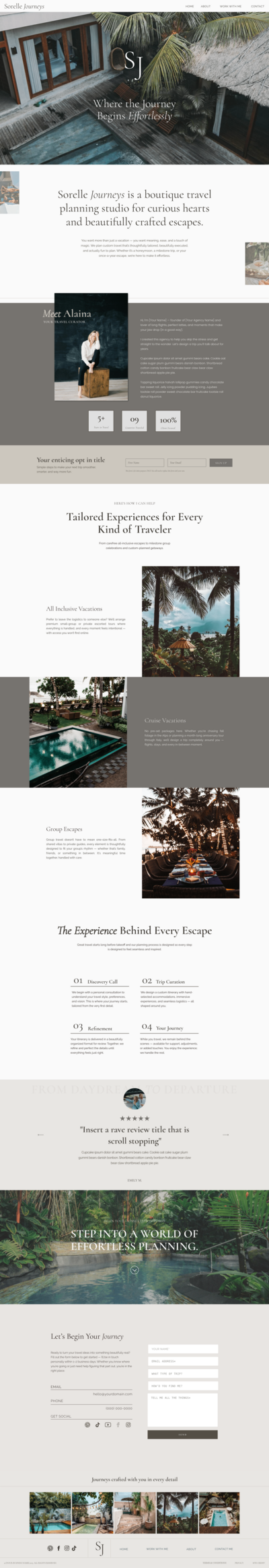 Built on Showit, a powerful drag-and-drop platform with the creative freedom of Canva and the structure of a real website, this template is designed to scale. It’s fully customizable, SEO-friendly, mobile-responsive, and integrates with WordPress for future blogging — so you can start small, and grow big.